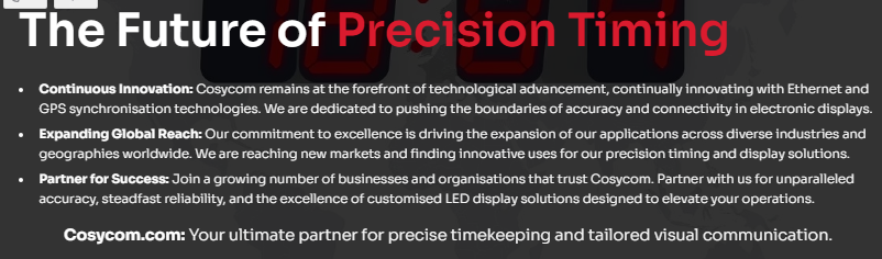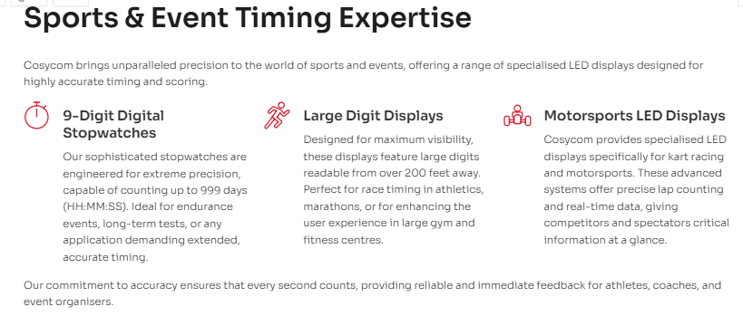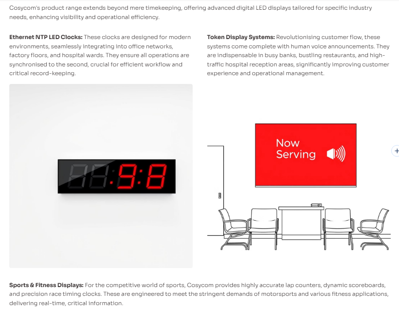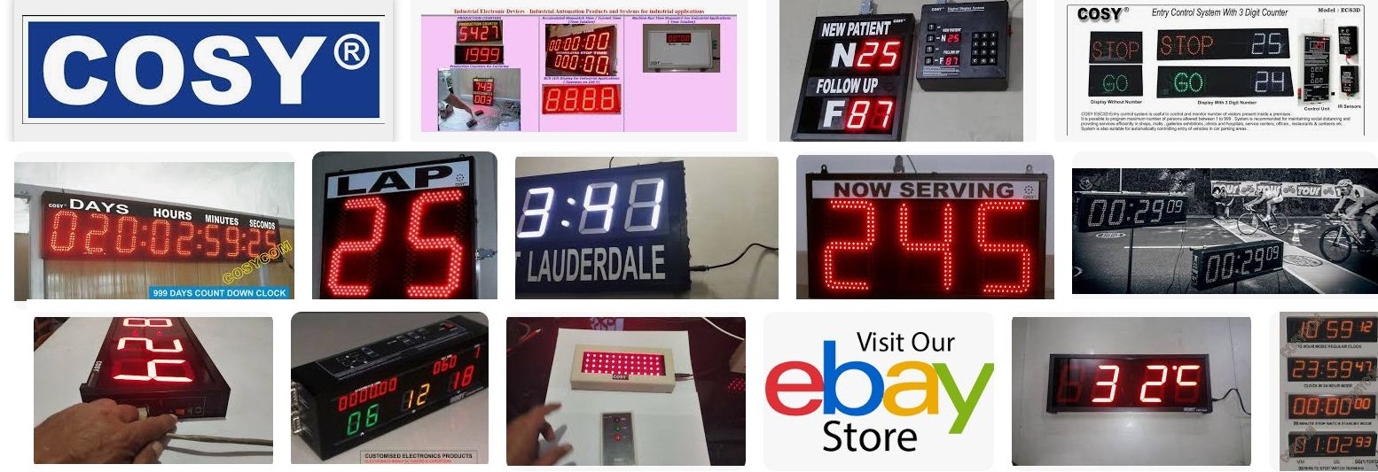 Cosycom is well-known for manufacturing custom LED display solutions across various sectors. Industrial & Factory Displays,production counters (up/down/count displays). Highly durable, retains data even after power outages. Timekeeping & Sports Displays.Industrial machine run-time stopwatches. Gym timers, race clocks, rally and marathon lap counters, Ethernet-enabled, GPS/NTP-synchronized LED digital clocks for precision timing ,Queue Management & Token Systems.Token number displays with optional human voice announcement. Used in banks, hospitals, restaurants, and various service centers. Specialty Displays. Manufacturers & Exporters of Digital LED Stopwatch Clocks, Token Number Displays / Queue Management Systems, Gym Exercise Fitness Clock,Digital Gym Clocks, Interval Timers, Sports Timing Equipment, Race Clocks, LED Sports Clocks, Time & Date Clocks. Sports Timing Equipments, record end-of-race results, Mile-Marker Race clocks. Pl. Visit http://www.cosycom.in for all product rates.
